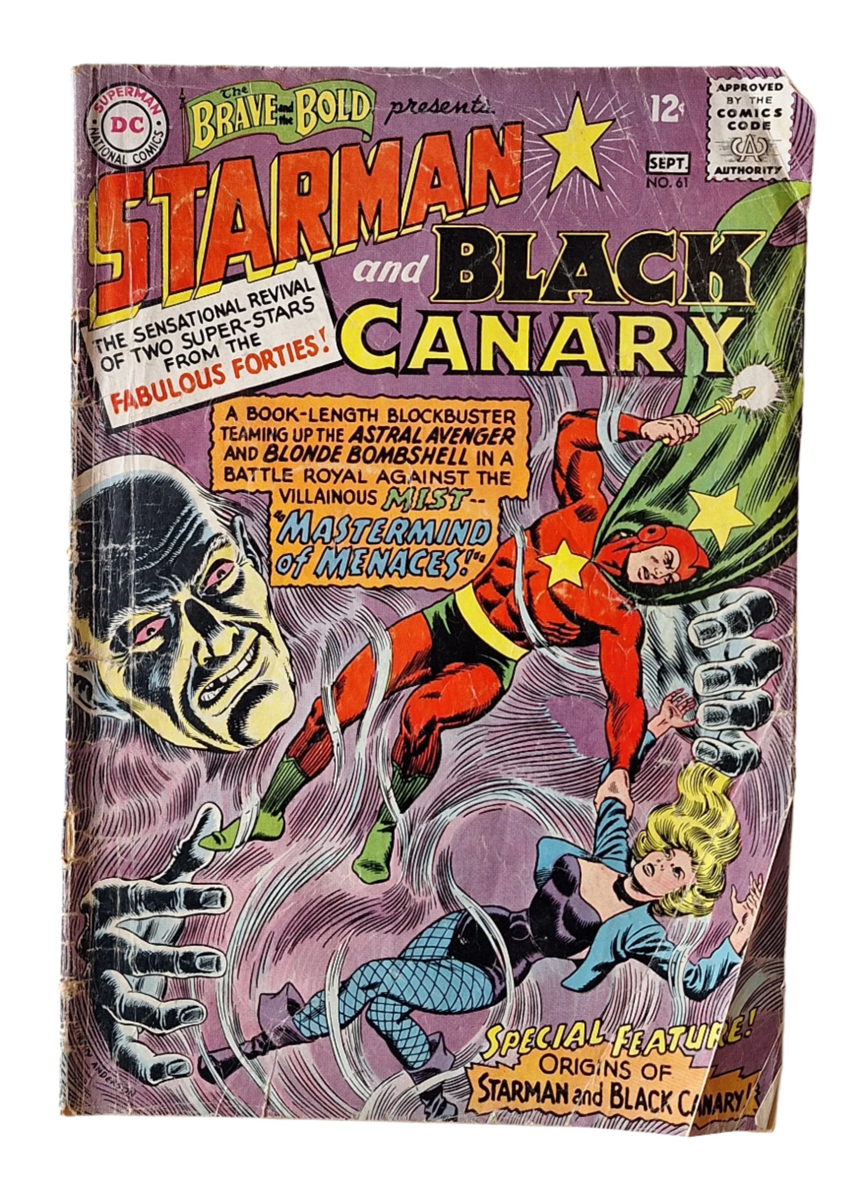 Written by Gardner Fox and illustrated by Murphy Anderson, this classic comic book was originally published in August 1965. The issue features one-page recaps of Starman and Black Canary's origins and introduces Starman's upgraded "Cosmic Rod."