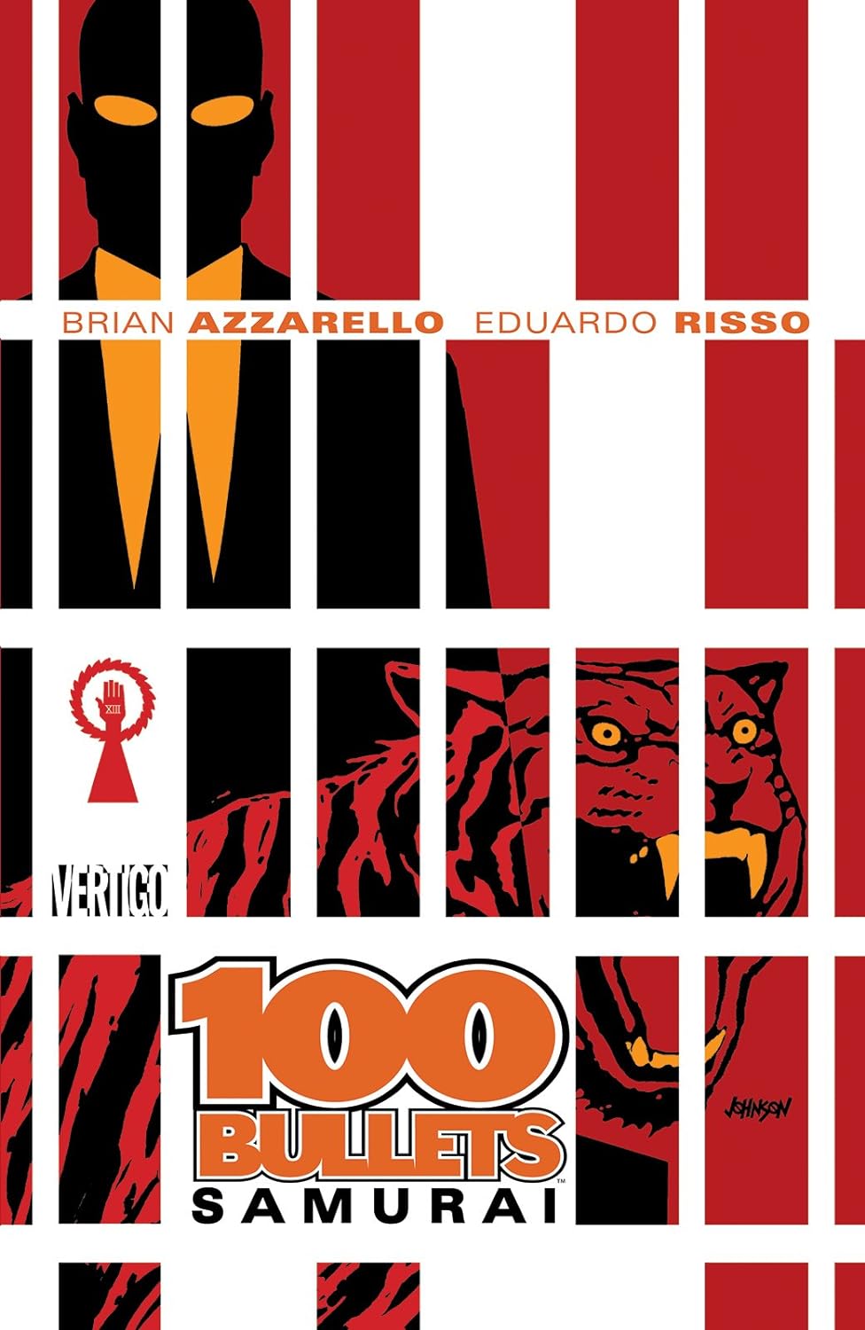Brian Azzarello's and Eduardo Risso's VERTIGO crime saga 100 BULLETS continues its collected editions with 100 BULLETS: SAMURAI, reprinting issues #43-49 of the critically acclaimed and award-winning ongoing series. This seventh volume, featuring the story arcs "Chill in the Oven" and "In Stinked," features a new cover by Dave Johnson and an introduction by legendary Argentinean comics writer Carlos Trillo.This 168-page trade paperback returns first to the character of Loop Hughes, who is joined in prison by Lono, and then to Jack Daw, who finds himself in a roadside zoo face to face with several varieties of wild animals — both two — and four-legged!