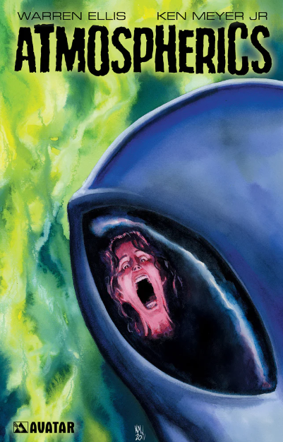 This special edition hard cover comes remarked with an original sketch by artist Ken Meyer and is limited to just 1000 copies. 100 random copies of the books will feature full color painted original artwork for the same low price! This is a rare opportunity to own a piece of Warren Ellis' alien abduction masterpiece with priceless original art by painter Ken Meyer.