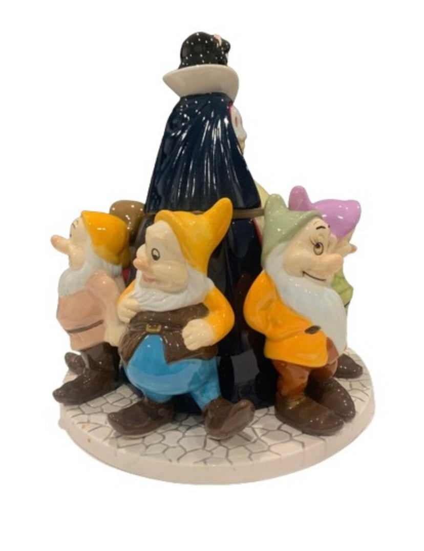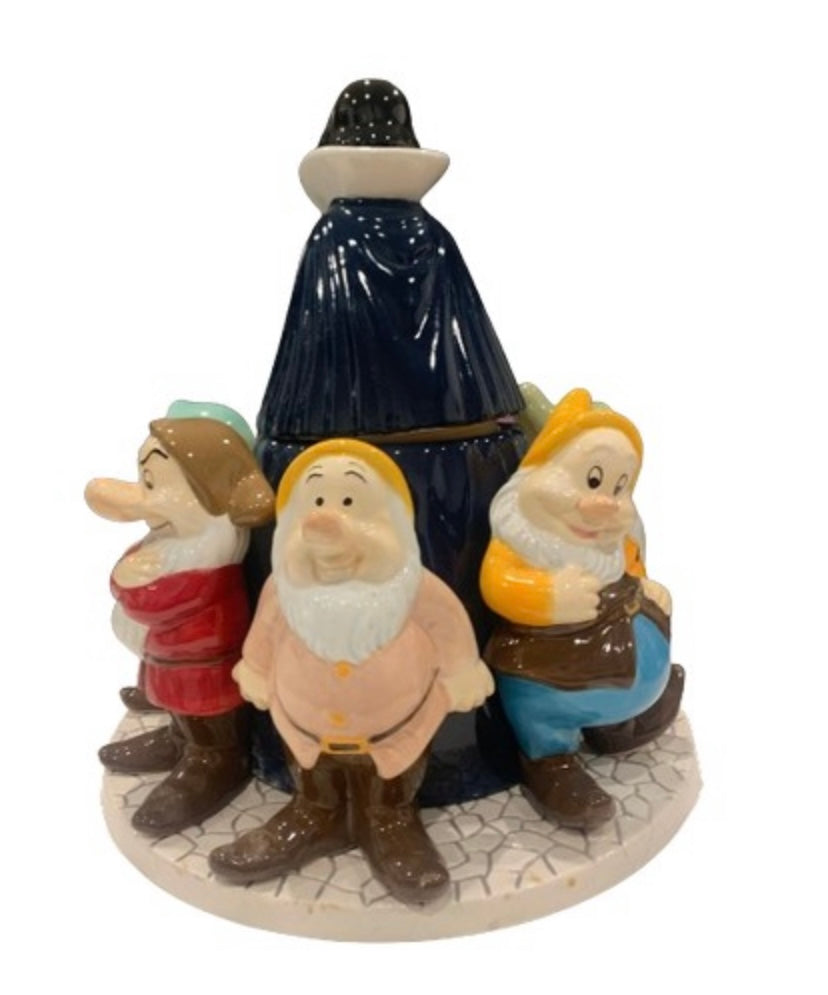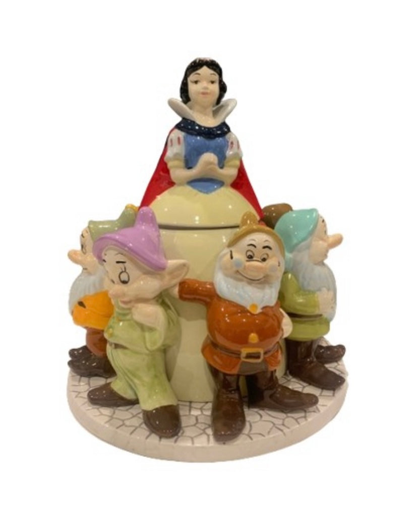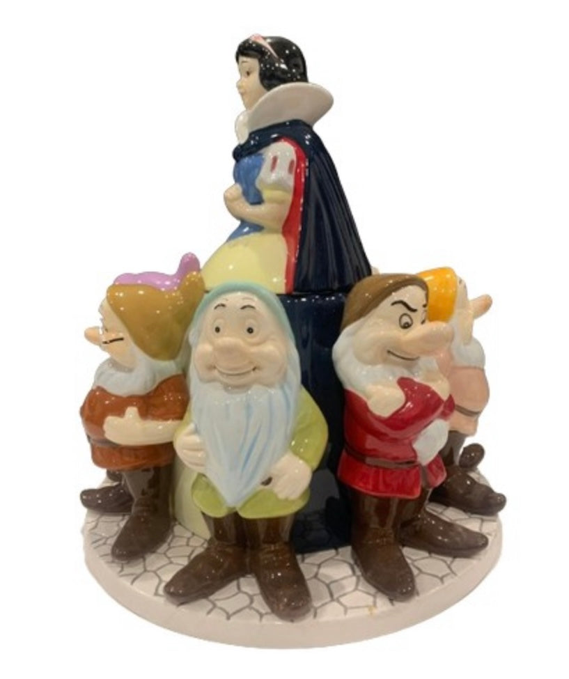 Snow White might have been known for her pies, but she's turned her eyes now to other sweet treats. This ceramic cookie jar features Snow White and each of the seven dwarfs. 12"dia x 12"h