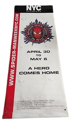 Spiderman 3 NYC banner- Columbia Pictures and Premiere Props present the Spider-Man Week Limited Edition Street Pole Banner! From the biggest movie ever, comes these rare limited edition Spider-Man 3 Street Pole Banners featured all across New York City for the premiere of Spider-Man 3! This is a very rare opportunity to own a piece of the Spider-Man premiere event with your very own double sided street pole banner which were hung from 42nd Street to Queens, the hometown of Peter Parker and the location of the actual premiere of the movie! Each banner measures 35X7X11", is rolled, and comes with a special area map to show the specific locations of each banner. This makes an incredible gift for all Spider-Man movie fans!
